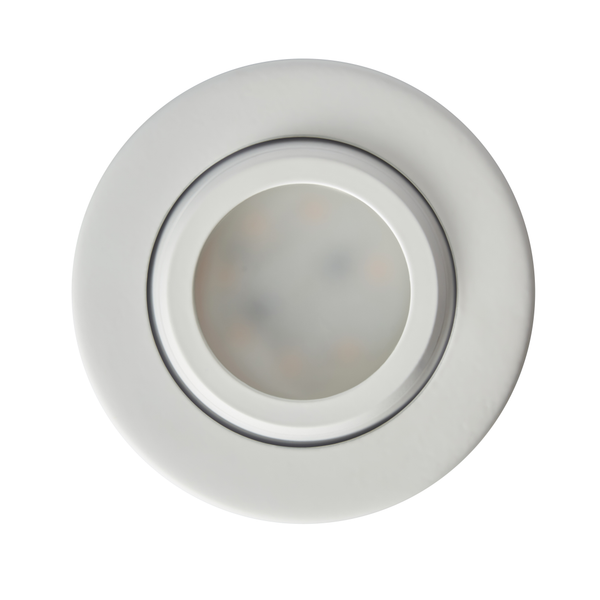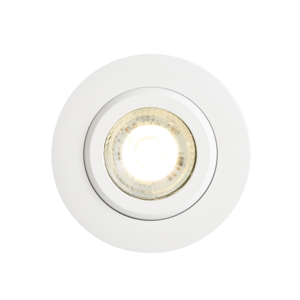 Cultivate a contemporary aesthetic in your home with the Eros Fire Rated LED IP65 tiltable downlight. This light, rated IP65, is adjustable, allowing it to be tilted to direct light in any desired direction. Additionally, it features a white finish for a polished look. Requires one GU10 bulb sold seperately.