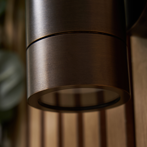 The Brac Solid Brass Outdoor Up or Down Wall Light brings industrial charm to your outdoor spaces. Featuring a stunning bronze finish, it offers a rustic aesthetic that pairs beautifully with brick walls. This versatile light can be used as either an uplight or downlight and is IP54 rated for reliable water resistance against outdoor weather conditions.