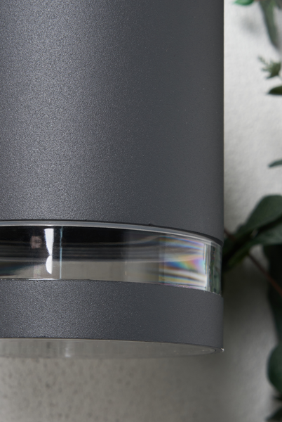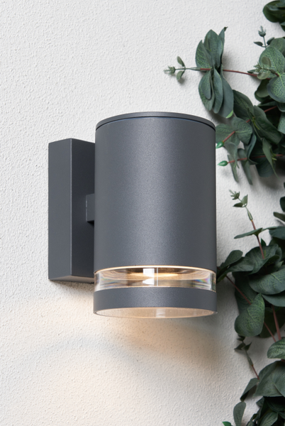 The Lens single light is a stylish and modern outdoor lighting option with a sleek anthracite finish for a neutral yet edgy look. Its contemporary design combines simplicity and elegance, making it both practical and visually appealing. The wall-mounted light features an IP44 rating, ensuring durability and suitability for outdoor use.